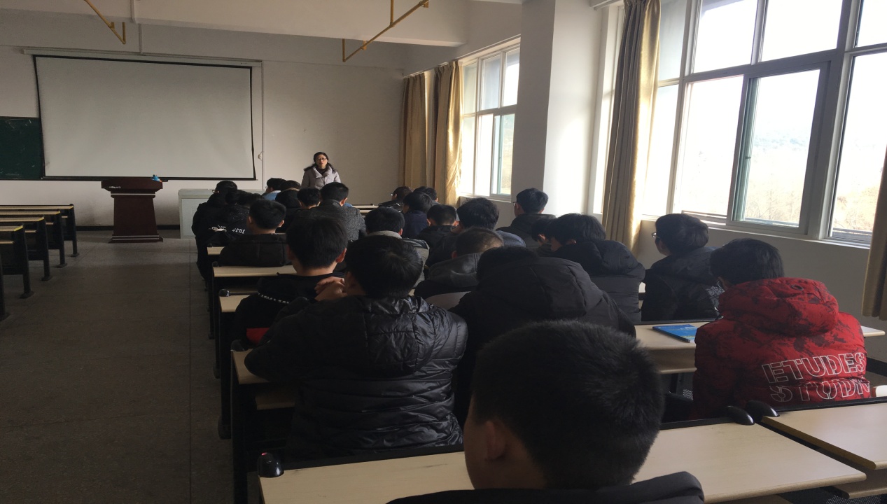 胡老师首先就原任班主任程威老师的工作调动和学院更名做了说明,接着从学生安全、学期规划、学雷锋活动、寒假作业等几个方面做了强调和要求。 胡老师首先强调了安全问题,她从一个小小插座引发的火灾实例讲起,强调了用电和财产安全,提醒同学们不要使用劣质接线板和插座,不要在寝室抽烟、使用热得快。 要人走锁门,她要求要严格执行五项制度和五条禁令。 接着,胡老师提出要做好新学期的规划, 她分别从学习、就业、早锻炼等方面对同学们提出建议,要求大家坚持早锻炼,坚持打卡,了解自己的学业状况,把握和珍惜每一次补考机会,尽快消灭不及格课程;多参加学科竞赛,为就业增加“砝码”和“敲门砖”。对3月学雷锋活动,胡老师提议在3月5日这一天,每个同学做一件好人好事,以实际行动践行雷锋精神。最后,胡老师向同学们表达了自己对全班同学的殷切期望,希望每个同学合理安排和规划自己的大学时光,争取全部顺利毕业,顺利就业,她同时表示,将付出最大的热情和能力服务好大家,做好同学们的人生导师和知心朋友。