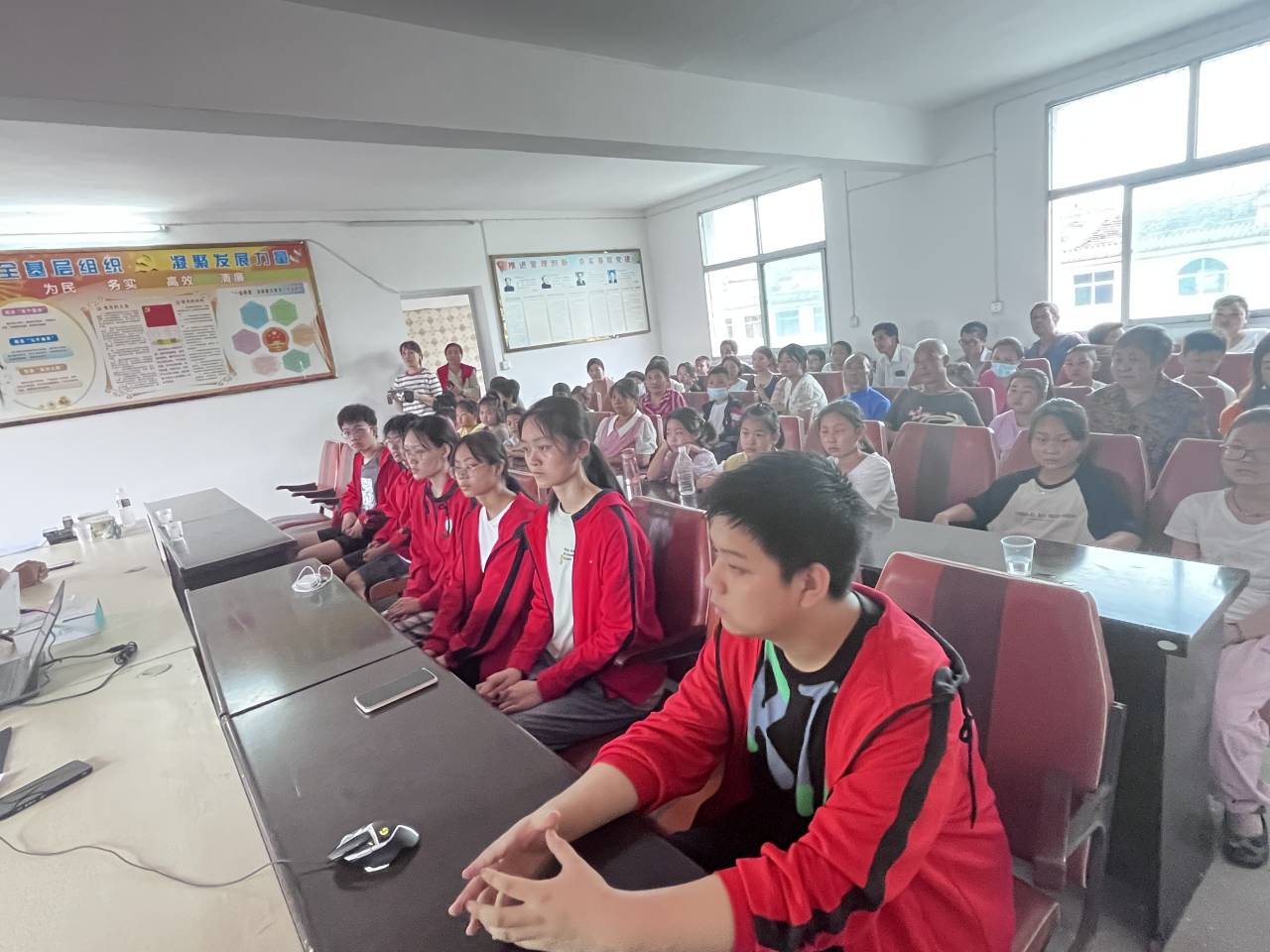 在擂鼓镇党委及红岩村党支部的关心与支持下,支教队老师与孩子们一同开展了开营仪式以及防溺水和防诈骗安全宣传。本次仪式由活动组织者刘怿哲主持,参会的来宾有擂鼓镇副镇长朱明健、红岩村村书记刘永国、湖北文理学院老师代表刘珍、竹山县旺都物业管理有限公司代表人杜飞以及支教团队的志愿者学生。在会上支教老师们分别进行了自我介绍然后和学生们强调了在假期学习中的注意事项以及安全问题并与学生家长签订了安全责任书。仪式的最后进行了学习用品捐赠仪式,竹山县旺都物业管理有限公司代表人杜飞向学生们捐赠了书包、铅笔等学习用品。