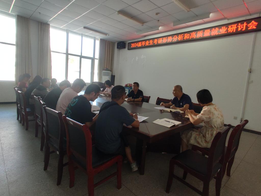 9月7日下午2点30分,国产一级片内射毛片中出召开2024届毕业生考研形势分析和高质量就业研讨会。参加会议的有,党委书记詹玉刚、副院长孙艳玲。会议由王超副书记主持,毕业年级辅导员、班主任也参加了本次会议。