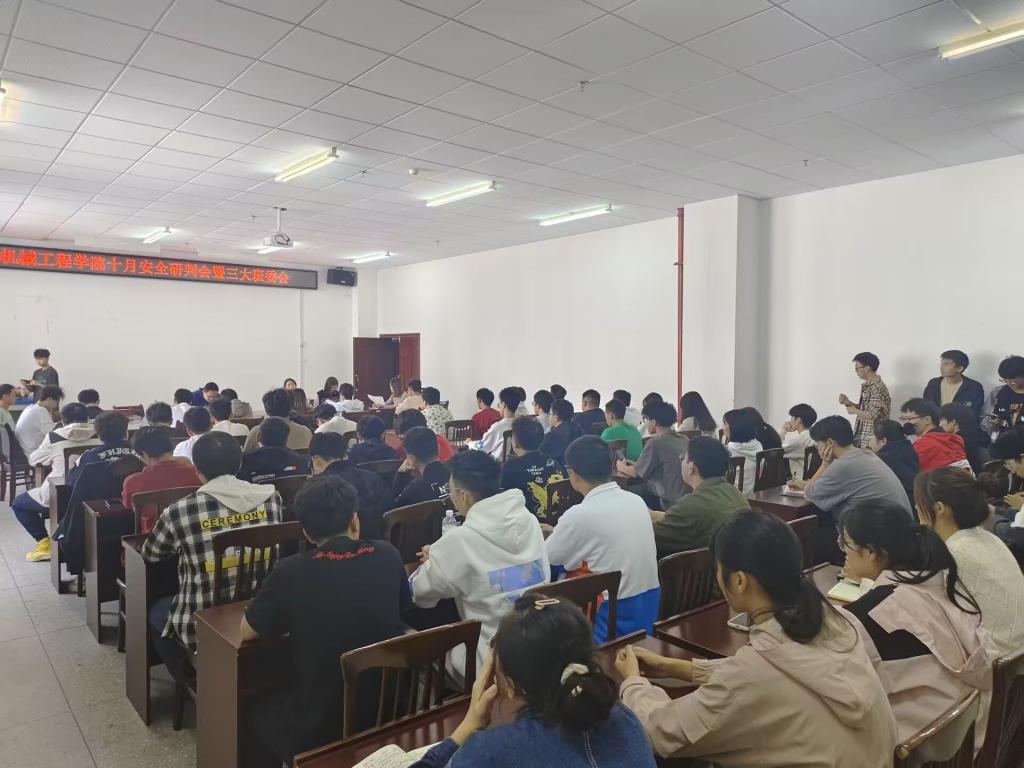 (通讯员:刘珍,陈志飞)为进一步夯实安全基础,筑牢安全防线,同时搭建师生沟通桥梁,我院于2023年10月24日12点30分在工科楼GW409会议室召开了十月安全研判会暨三大班委会,学工办主任徐一刚老师、各年级辅导员以及各班三大班委和心理委员参加了此次会议。