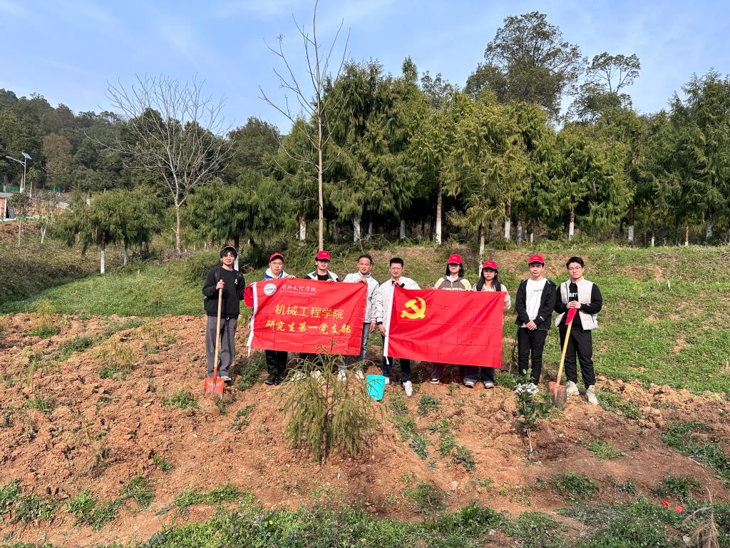 (通讯员赵兆钧)阳春三月,微风骀荡,万物复苏,生机盎然。在第46个植树节来临之时,3月12日,机械学院师生举行了“植树造林,绿满湖文”义务植树活动。在学院老师带领下,机械学院研究生第一党支部联合机械学院团委一行,携带着铁锹、锄头、水桶等工具,前往襄阳市林业科学研究所育苗基地、学校北区工科楼前栽种桂花树。