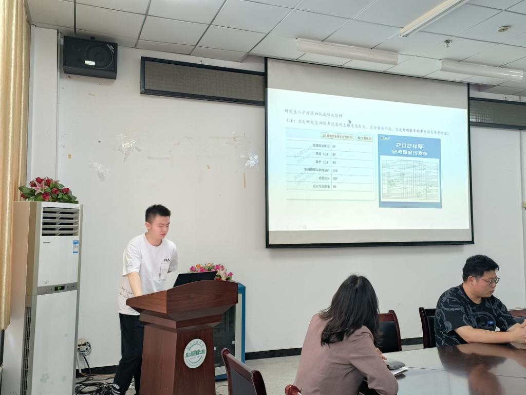 会议伊始,董瑞霖同学介绍了此次会议的主要流程,接着赵老师为同学们讲解考研的基本知识及当前的考研环境。随后学长们从自身经历出发,讲述了他们考研路上的艰辛与收获。首先赵海峰学长从如何选择目标院校与专业、制定合理的学习计划、高效利用时间、应对压力与挫折等方面,分享了他的宝贵经验和实用技巧。接着王思达学长就面试时间、面试流程以及面试时可能遇到的问题为同学们做了详细讲解。随后蔡佳崇学长就如何调剂,怎样选择调剂院校,面临调剂时需准备什么,在调剂过程中需要注意哪些方面的知识等,为同学们逐一讲解。最后侯勤裕学长就如何缓解压力、调整心态等,给大家讲述了他的考研过程,侯勤裕学长以诙谐的语言缓解了紧张的气氛,为同学们提供了精神上的鼓舞。每一位学长的经历都饱含着汗水与智慧,他们的坚持与努力激励着在场的每一位同学。