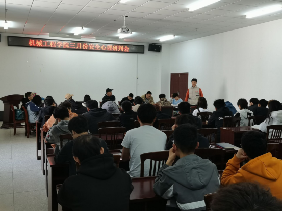 本次会议首先由康老师对学位,学分,重修机制进行解释强调,再由学生干部强调本次心理普查的总结及部门日常工作安排,最后由赵导、徐导、王书记分别发言强调心理健康安全的重要性。党委副书记王超对当前了安全工作形势作了具体部署和安排,一是要做好严禁学生集体外出春游的宣传教育工作,强化学生的安全意识;二是要针对清明假期各班级要召开专门的安全工作会议,做好《强化安全意识提高安全素养~给学生的一封信》的宣讲工作;三是做好寝室实验室消防安全大排查;四是要针对春季心理问题高发这一现状,做好心理问题学生的预防和跟踪,落实一人一策不漏一人;五是要以学生党支部带头,落实好党员夜晚巡查值班制度,加强自我管理;六是加大防盗、防骗、防抢等专项安全教育工作。