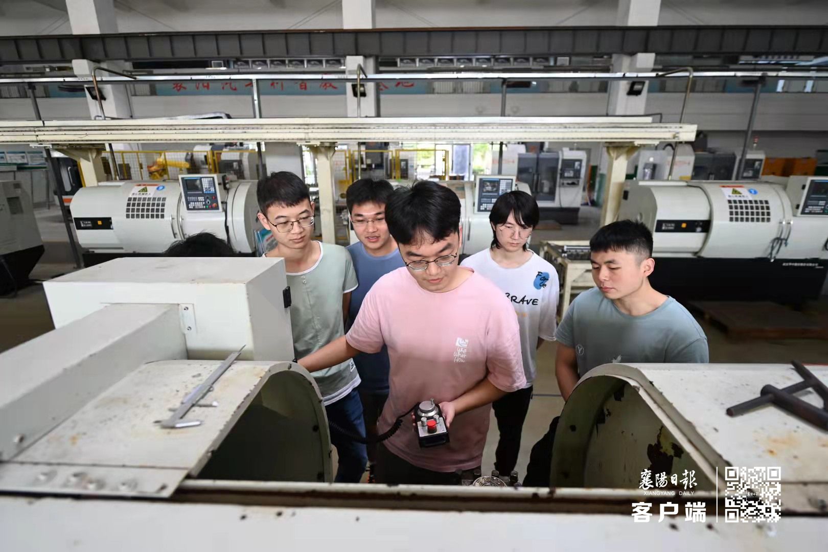 9月8日,返校后的大学生正在湖北文理学院校内实习工厂学习操作数控设备、拆解组装汽车发动机,了解机床设备。