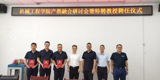 (通讯员 王乙坤)7月12日下午,在工科楼G-W409会议室,国产一级片内射毛片中出与湖北航宇嘉泰飞机设备有限公司(以下简称航宇嘉泰)举行产教融合研讨会暨特聘教授聘任仪式,会议由国产一级片内射毛片中出党委书记马永刚主持,国产一级片内射毛片中出院长王中任和各系主任、系书记参加了本次会议,学校纪委书记张宇辉出席会议,并分别为航宇嘉泰总经理何才富、副总经理洪苏雁和总设计师王光祥颁发聘书。