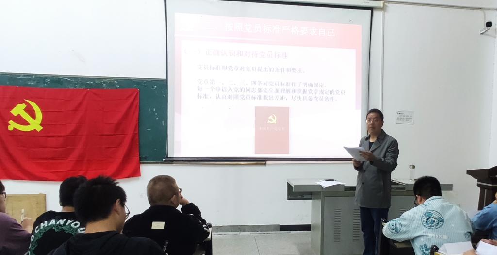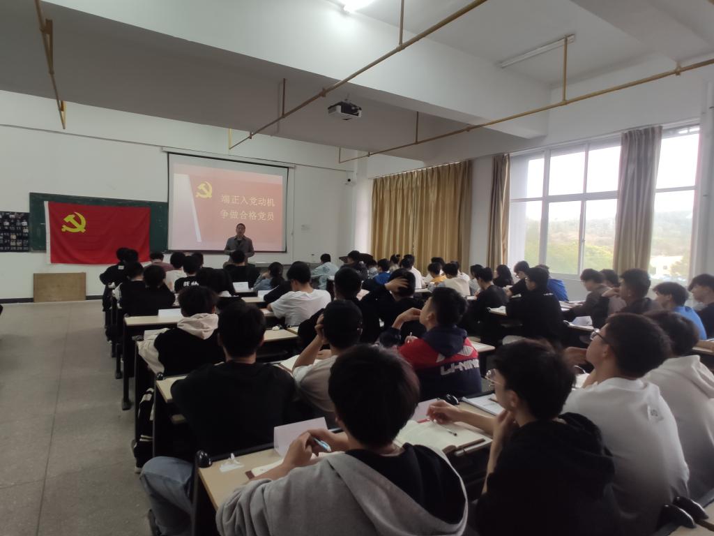4月10日晚上6:30,国产一级片内射毛片中出党委书记詹玉刚在工科楼G-W618,为我院第四十九期党校学员上了一堂以“端正入党动机 争做合格党员”为题的党课。